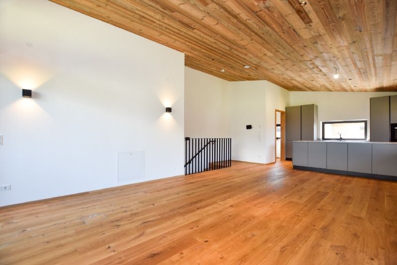 Das Herzstück der Häuser bildet das Obergeschoss. Ein offenes Raumkonzept und der ca. 4 Meter hohe Sichtdachstuhl verleihen dem Wohnbereich eine majestätische Großzügigkeit.