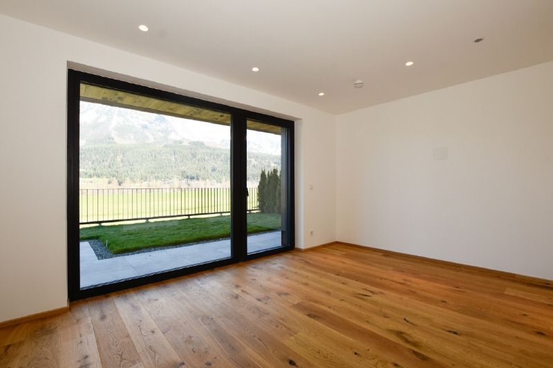Die angrenzende, ca. 35 m² große Terrasse erweitert den Wohnraum nach draußen und bietet einen Logenplatz in der Tiroler Bergwelt.